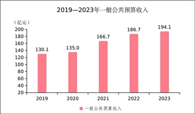 全年全市一般公共預算收入194.1億元,比上年增長3.9%。其中,稅收收入128.3億元,比上年下降1.6%。一般公共預算支出464.6億元,比上年增長15.8%。其中,用于民生的支出364.0億元,占一般預算支出的比重為78.3%。在民生支出中,教育支出增長11.4%,文化旅游體育與傳媒支出增長24.2%,衛生健康支出增長4.4%,社會保障和就業支出增長14.6%;城鄉社區支出增長2.4%。