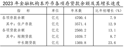 年末全市金融機構本外幣各項存款余額4700.4億元,比年初增加345.8億元,比年初增長7.9%。年末全市金融機構本外幣各項貸款余額2560.2億元,比年初增加296.9億元,比年初增長13.1%。