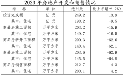 全年全市房地產開發投資249.2億元,比上年下降13.9%。其中,住宅投資198.2億元,下降9.5%;商業營業用房投資23.2億元,下降25.7%。