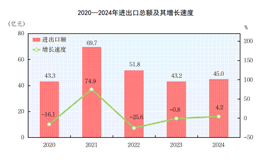 全年全市海關(guān)進(jìn)出口總額45.0億元,比上年增長4.2%。其中,出口額37.7億元,下降2.7%;進(jìn)口額7.3億元,增長63.6%。全年全市完成跨境電商進(jìn)出口貿(mào)易額4.8億元,同比增長132.0%。